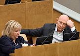 Пленарное заседание Государственной думы (ГД) России. Заместитель председателя комитета ГД России по вопросам семьи, женщин и детей Елена Вторыгина (слева) и первый заместитель председателя комитета ГД России по безопасности и противодействию коррупции Михаил Старшинов (справа) во время заседания.