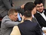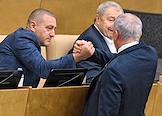 Пленарное заседание Государственной думы (ГД) России. Слева направо: первый заместитель председателя комитета ГД России по государственному строительству и законодательству Даниил Бессарабов, председатель комитета ГД России по охране здоровья Бадма Башанкаев и первый заместитель председателя комитета ГД России по культуре Александр Шолохов во время заседания.