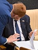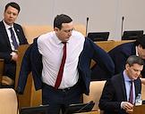 Пленарное заседание Государственной думы (ГД) России. Первый заместитель комитата по культуре ГД России Денис Майданов во время заседания.