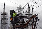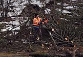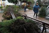 Последствия шторма в Крыму. Жанровая фотография. Сотрудники коммунальных служб убирают поваленные деревья.