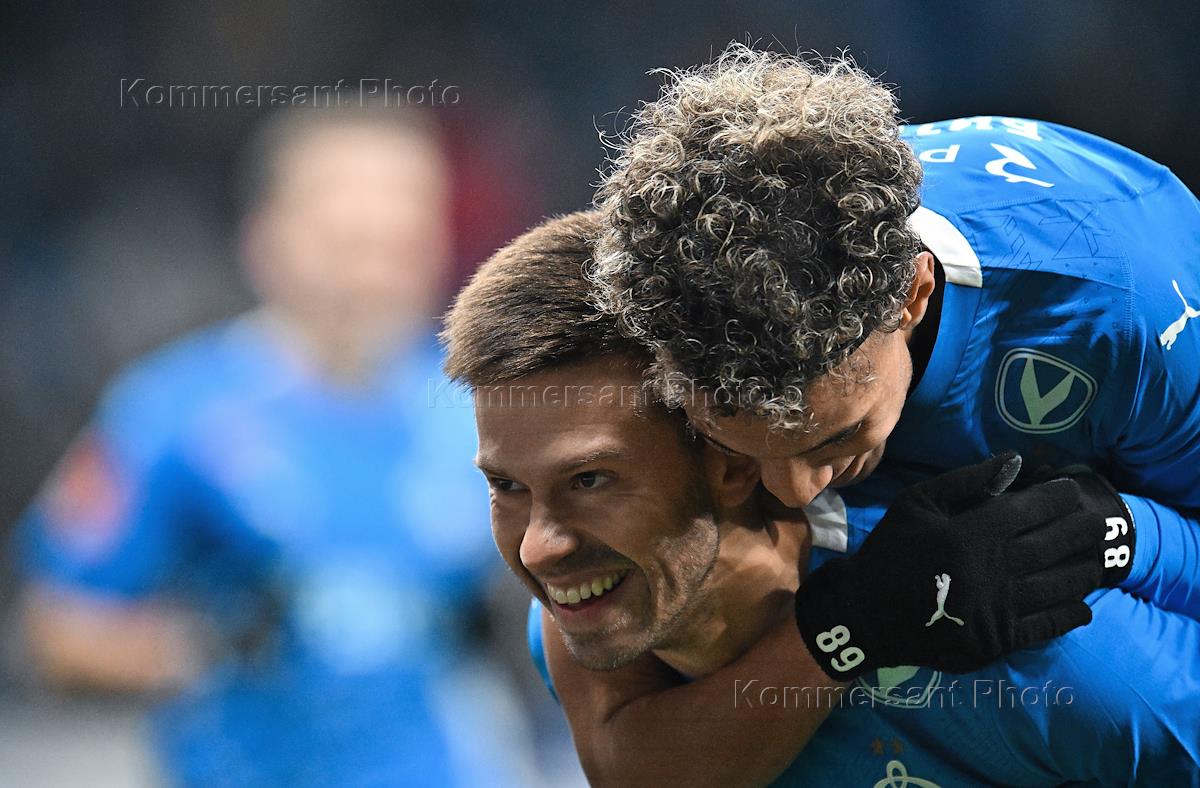 FONBET - Кубок России по футболу. 1/4 финала. Матч между командами "Динамо М" (Москва) - "Зенит"(Санкт-Петербург) на Центральном стадионе "Динамо" имени Льва Яшина. Игроки команды "Динамо" Федор Смолов (справа) и Бителло (слева) во время матча.