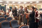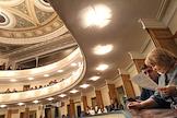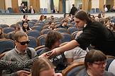 The play "At the Bottom" with audio commentary for the visually impaired was held at the Regional Drama Theater named after Gorky. Spectators before the start of the performance.