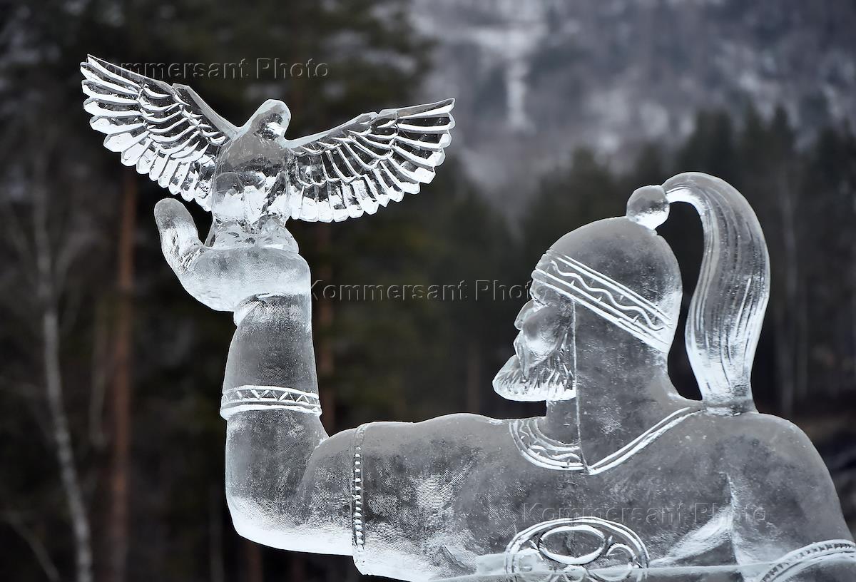 Работа всесезонного курорта "Манжерок" в Республике Алтай. Церемония открытия променада "Ледовые скульптуры" на курорте "Манжерок".