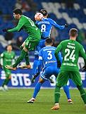 Российская Премьер-Лига (РПЛ). МИР - Чемпионат России по футболу 2023/2024. 17-й тур. Матч между командами "Динамо" (Москва) - "Рубин" (Казань) на стадионе "ВТБ Арена". Игрок команды "Рубин" Никола Чумич (слева) во время матча.
