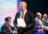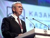 Архитектурно-строительный форум "Казаныш-2023" в Татарском государственном Академическом театре имени Г.Камала. Мэр Анкары Мансур Яваш во время выступления на пленарной сессии "Идентичность как важнейший ресурс развития современных городов".