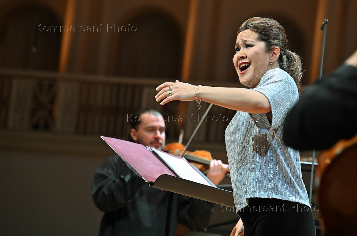 Концерт "Десятников. "Opera" – балет. Гендель. Арии из опер" в Концертном зале имени П.И. Чайковского. Оперная певица Яна Дьякова во время концерта.