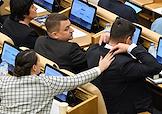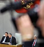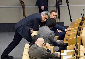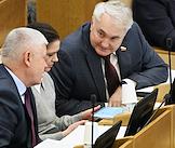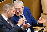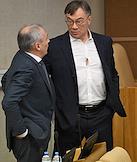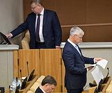 Пленарное заседание Государственной думы (ГД) России. Председатель комитета ГД России по защите конкуренции Валерий Гартунг (справа) во время заседания.