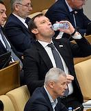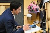 Пленарное заседание Государственной думы (ГД) России. Член комитета ГД России по охране здоровья Андрей Горохов (в центре) во время заседания.