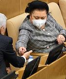 Пленарное заседание Государственной думы (ГД) России. Заместитель председателя комитета ГД России по экологии, природным ресурсам и охране окружающей среды Жанна Рябцева во время заседания.