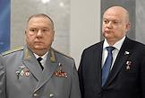 Пленарное заседание Государственной думы (ГД) России. Заместитель председателя комитета ГД России по развитию гражданского общества, вопросам общественных и религиозных объединений Владимир Шаманов (слева) и первый заместитель председателя комитета ГД России по обороне Андрей Красов (справа) перед началом заседания.