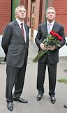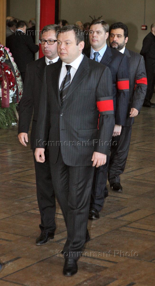 Заместитель министра экономического развития и торговли России Андрей Шаронов (справа) на гражданской панихиде по Аркадию Вольскому в Дворце культуры "ЗИЛ". Почетный президент Российского союза промышленников и предпринимателей (РСПП) Аркадий Вольский скончался 9 сентября на 75-м году жизни после продолжительной болезни.