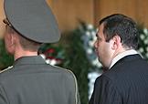 Похороны почетного президента Российского союза промышленников и предпринимателей (РСПП) Аркадия Вольского на Новодевичьем кладбище. Солдат роты почетного караула держит рукой штык винтовки.