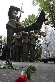 Похороны Аркадия Вольского на Новодевичьем кладбище. Почетный президент Российского союза промышленников и предпринимателей (РСПП) Аркадий Вольский скончался 9 сентября на 75-м году жизни после продолжительной болезни. Солдаты роты почетного караула рассматривают орден Аркадия Вольского.