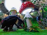 Монтаж выставки-путешествия "Тайна забытых сказок" в общественно культурно-деловом пространстве "Севкабель-Порт". Жанровая фотография.