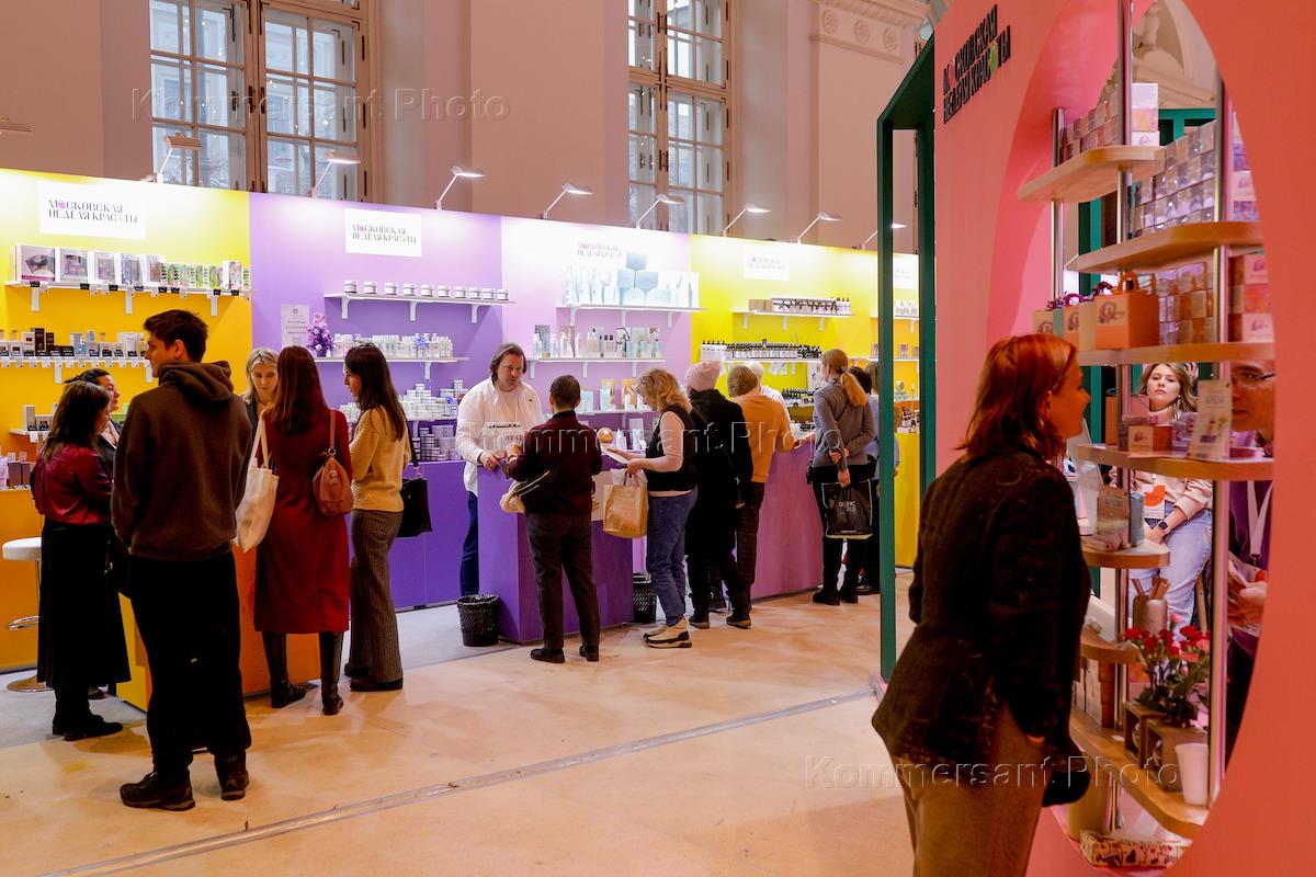 Неделя красоты в Москве. Посетители и консультанты международной выставки косметической промышленности и индустрии красоты.