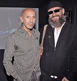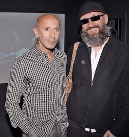 Галерист Гари Татинцян (слева) и художник Олег Кулик (справа) на церемонии открытия фотовыставки Стивена Кляйна "Madonna. X-STaTIC PRO=CeSS" в галерее "Гари Татинцяна".