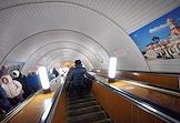 Замена турникетов на станции метро "Площадь 1905 года". Жанровая фотография. Пассажиры на эскалаторе метро.