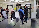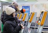 Замена турникетов на станции метро "Площадь 1905 года". Жанровая фотография. Пассажиры во время прохода через турникеты.