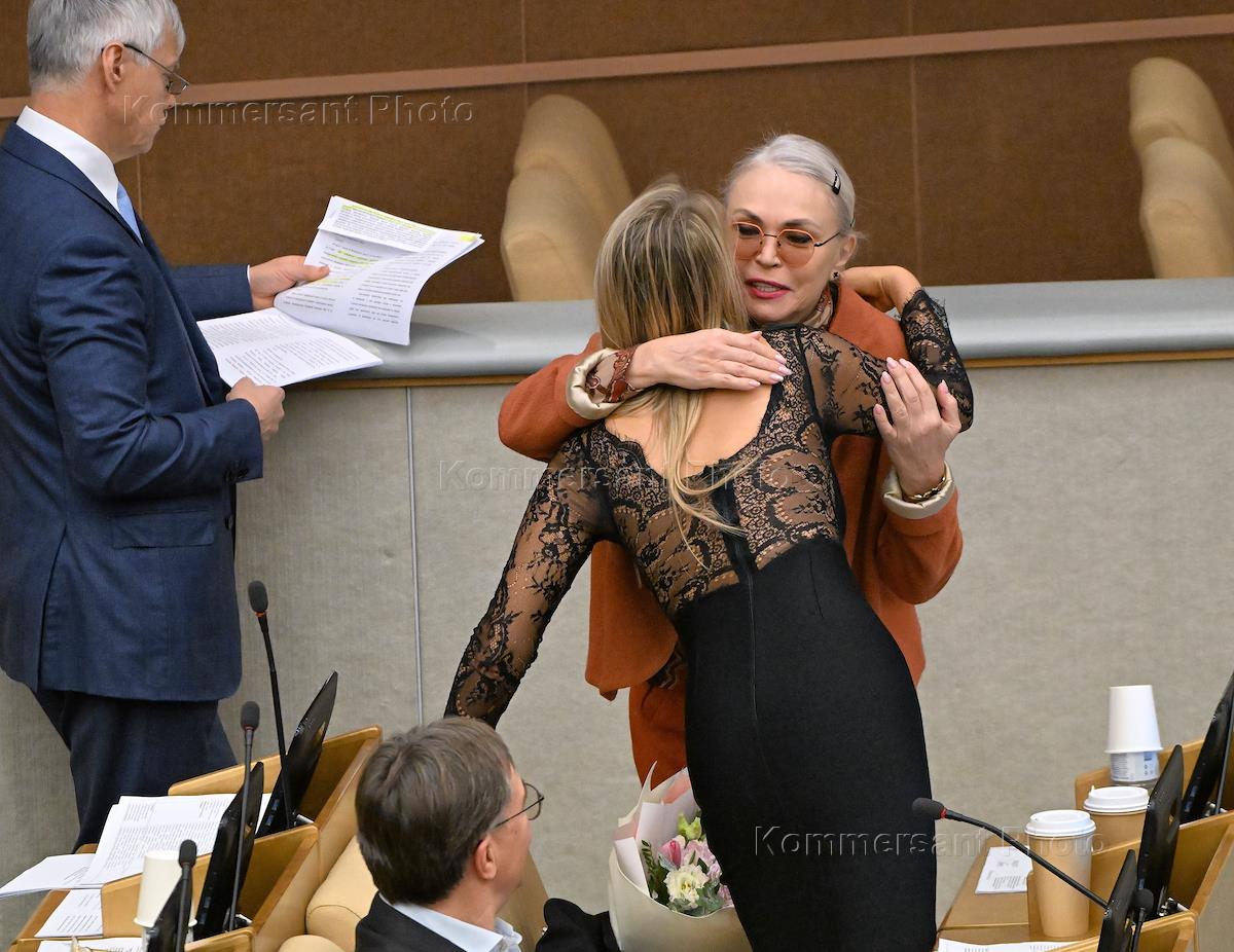 Пленарное заседание Государственной думы (ГД) России. Председатель комитета ГД России по развитию гражданского общества, вопросам общественных и религиозных объединений Ольга Тимофеева (слева) во время заседания.