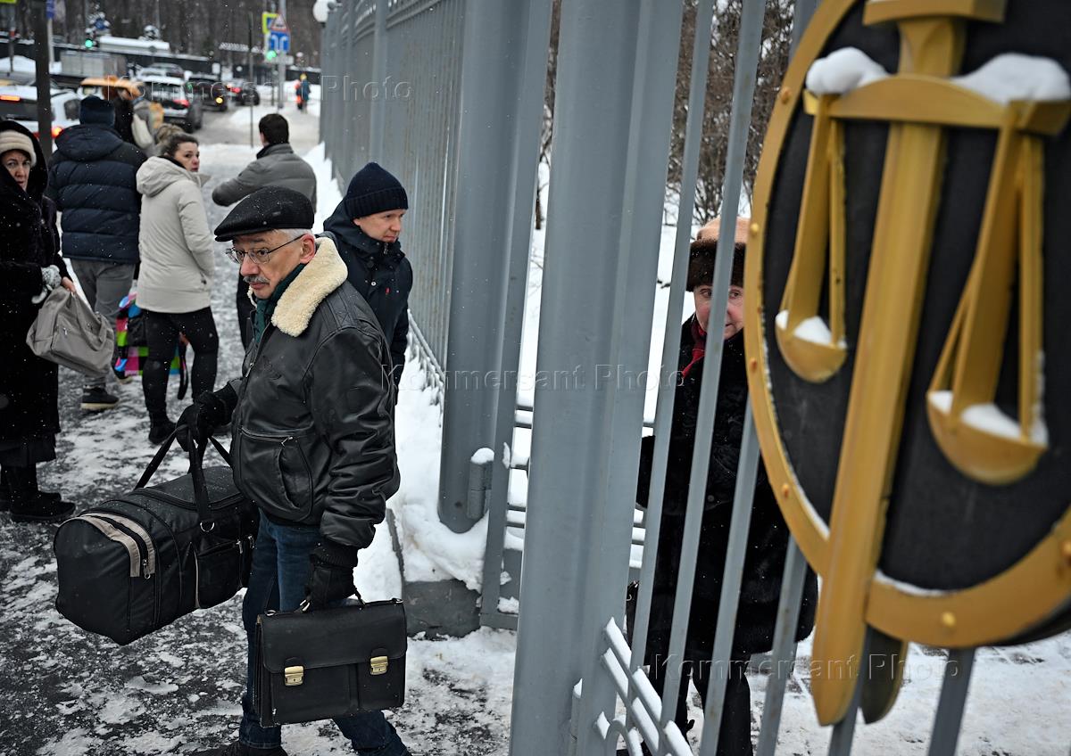 Рассмотрение апелляционной жалобы на приговор по делу сопредседателя Центра "Мемориал" (признан в России иноагентом) Олега Орлова, обвиняемого в "повторной дискредитации" армии за публикацию статьи с критикой специальной военной операции (СВО) на Украине и российской власти, в Московском городском суде. Председатель совета правозащитного центра "Мемориал" Олег Орлов после заседания суда.