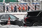 Жанровая фотография. Снегопад в городе. Последствия прихода циклона "Ваня" (Vanja). Сотрудники полиции во время патрулирования по улице.