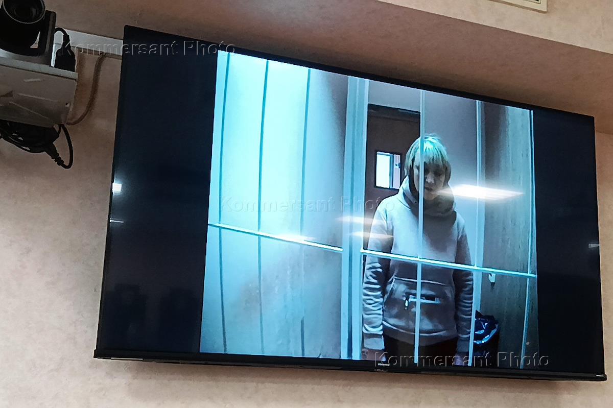 A meeting on choosing a preventive measure for Galina Chertkova, accused of providing services that do not meet safety requirements, resulting in the death of two people, in the Sovetsky District Court. An employee of the security company (private security company) "Agency Excalibur" Galina Chertkova (on screen) during the court hearing.