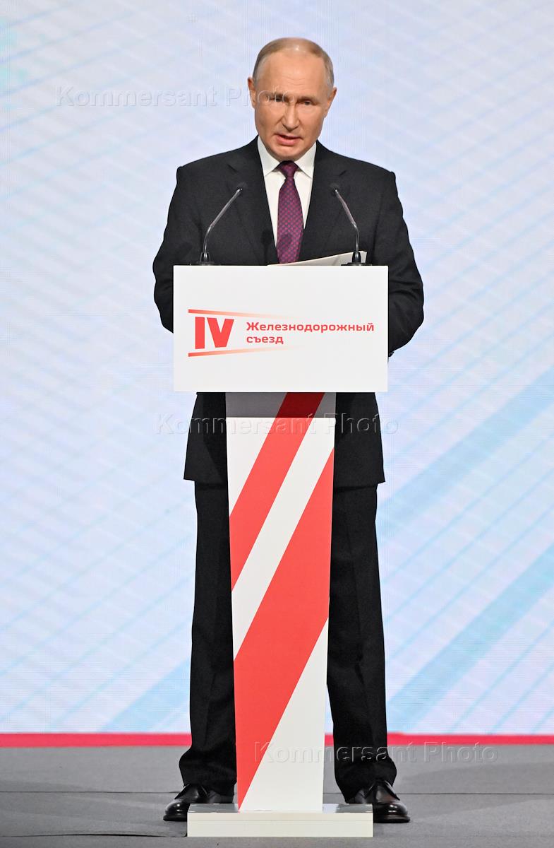 Президент России Владимир Путин во время выступления на IV железнодорожном съезде в спортивном комплексе "Международный центр самбо".