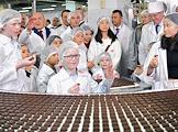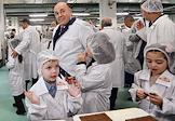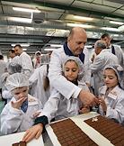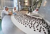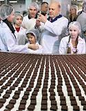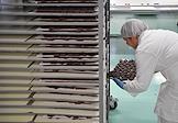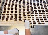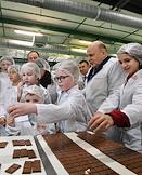 Предприятие холдинга "Объединенные кондитеры". Жанровая фотография. Шоколадные конфеты на конвейере.