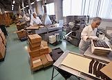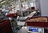 Предприятие холдинга "Объединенные кондитеры". Жанровая фотография. Рабочие предприятия во время укладки конфет в ящики.