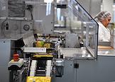 Предприятие холдинга "Объединенные кондитеры". Жанровая фотография. Рабочие предприятия во время работы в цехе упаковки шоколада.