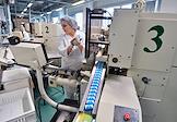 Предприятие холдинга "Объединенные кондитеры". Жанровая фотография. Рабочие предприятия в цехе упаковки конфет.
