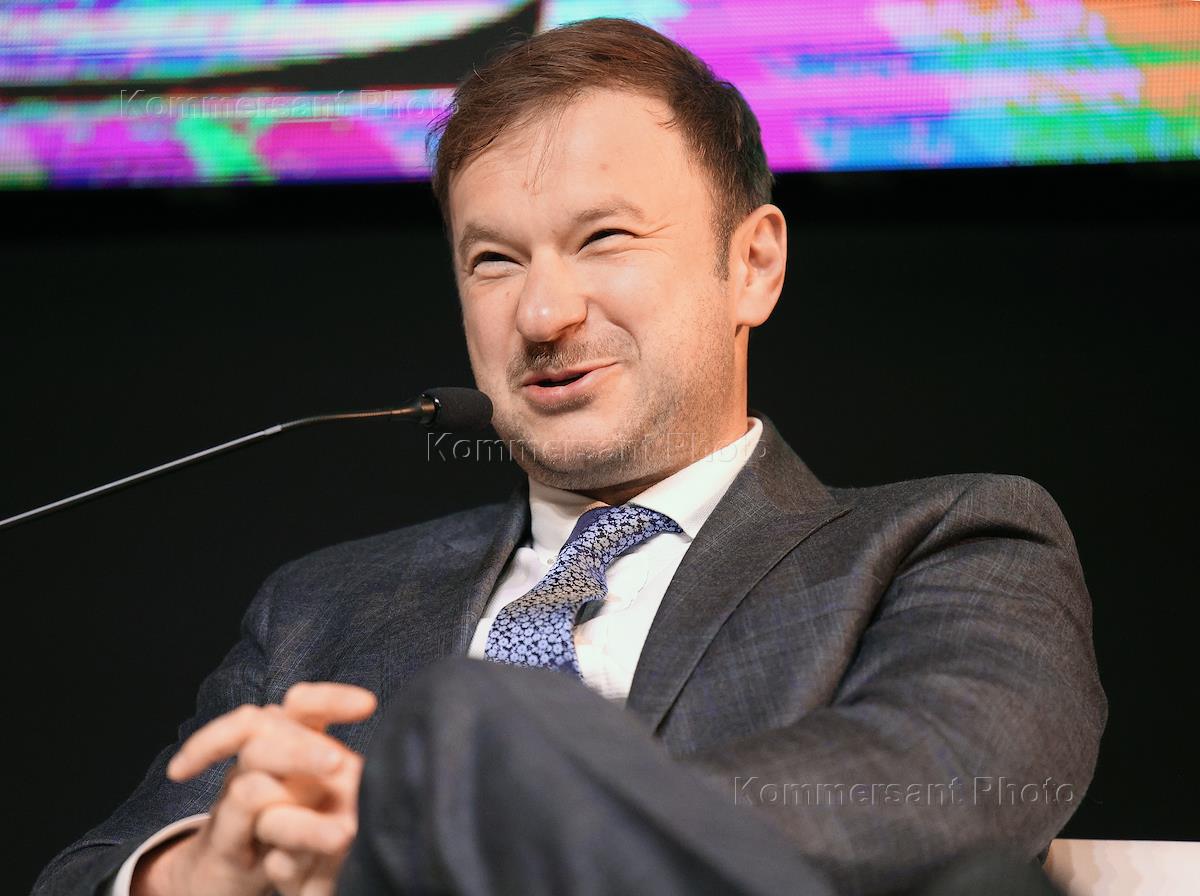 Форум "Мой бизнес. E-COM" в здании Поволжского государственного университета физической культуры, спорта и туризма (ПГУФКСиТ). Президент ассоциации компаний интернет-торговли (АКИТ) Артем Соколов во время заседания форума.