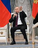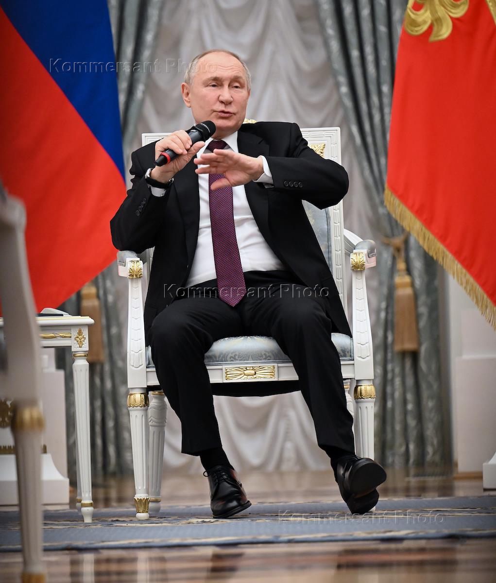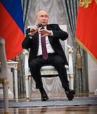 Президент России Владимир Путин во время встречи с победителями и наставниками Всероссийского чемпионата по профессиональному мастерству "Профессионалы" в Кремле.