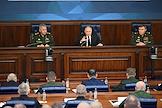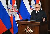 Расширенное заседание коллегии Министерства обороны России в Национальном центре управления обороной. Президент России Владимир Путин во время заседания.