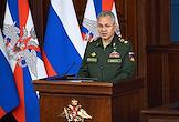 Расширенное заседание коллегии Министерства обороны России в Национальном центре управления обороной. Министр обороны России Сергей Шойгу во время заседания.