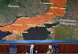 Расширенное заседание коллегии Министерства обороны России в Национальном центре управления обороной. Президент России Владимир Путин (слева) и начальник Генерального штаба Вооруженных сил России — первый заместитель министра обороны России Валерий Герасимов (справа) во время заседания.