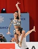Чемпионат России по фигурному катанию на Ледовой арене "Трактор". Спортивные пары, короткая программа. Фигуристы Александра Бойкова и Дмитрий Козловский во время выступления на соревнованиях.