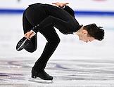 Чемпионат России по фигурному катанию на Ледовой арене "Трактор". Мужчины, короткая программа. Фигурист Дмитрий Алиев во время выступления на соревнованиях.