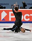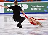 Чемпионат России по фигурному катанию на Ледовой арене "Трактор". Танцы. Фигуристы Александра Степанова и Иван Букин во время исполнения ритмического танца.