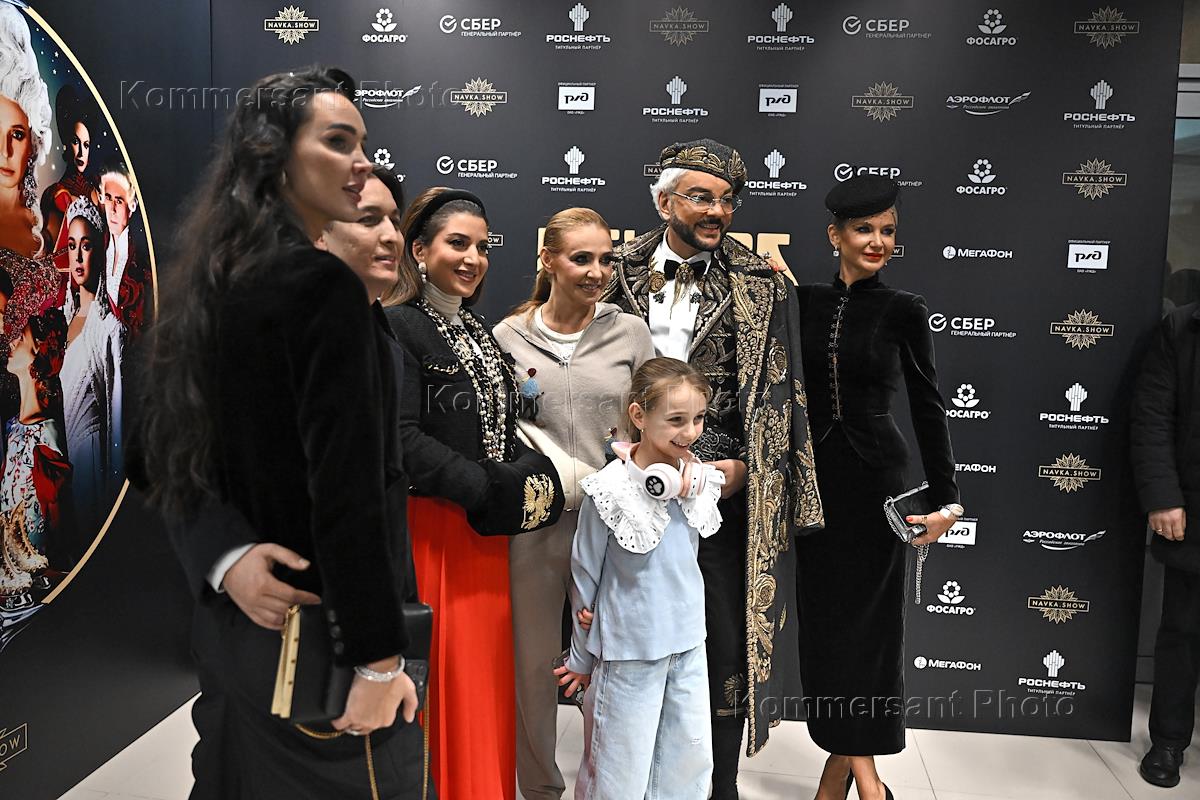 Премьера ледового шоу Татьяны Навки "Вечера на хуторе" во Дворце спорта "Мегаспорт". Справа налево: композитор, исполнитель Аркадий Укупник, его дочь София и Супруга Наталья Укупник перед премьерой.