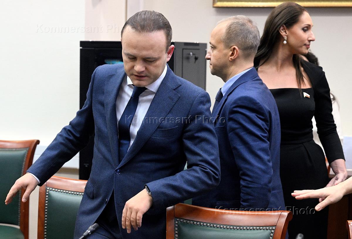 Церемония подачи документов для регистрации кандидата на выборах на пост президента России от партии "Новые люди" в Центральной избирательной комиссии (ЦИК) России. Заместитель председателя Государственной думы (ГД) России, первый заместитель руководителя фракции "Новые люди" в ГД России Вячеслав Даванков (слева) во время церемонии.