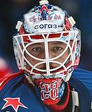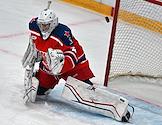 Континентальная хоккейная лига (КХЛ). Чемпионат сезона 2023/24. Матч между командами ЦСКА (Москва) - СКА (Санкт-Петербург) на стадионе "ЦСКА Арена". Вратарь команды ЦСКА Дмитрий Гамзин во время матча.