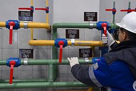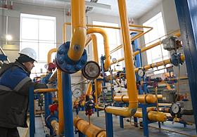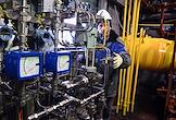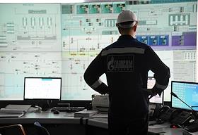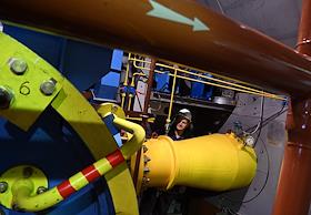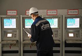 Пресс-тур на компрессорную станцию (КС) "Волоколамская" ПАО "Газпром". Жанровая фотография. Сотрудники ООО "Газпром трансгаз Москва" во время работы на территории станции.