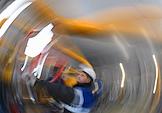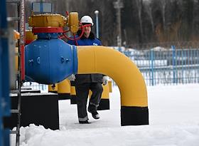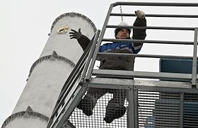 Пресс-тур на компрессорную станцию (КС) "Волоколамская" ПАО "Газпром". Жанровая фотография. Сотрудник ООО "Газпром трансгаз Москва" во время работы на территории станции.