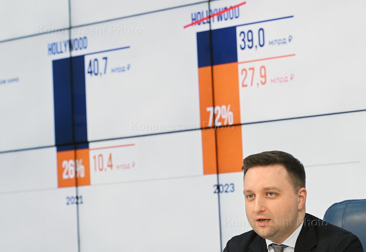 Пресс-конференция, посвященная подведению итогов года в российской киноиндустрии, в пресс-центре ТАСС. Исполнительный директор Фонда кино Федор Соснов во время пресс-конференции.