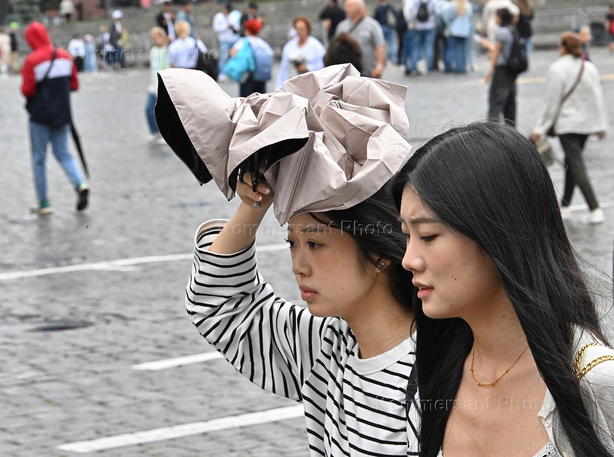 Views of Moscow. Genre photography. Foreign tourists on Red Square.