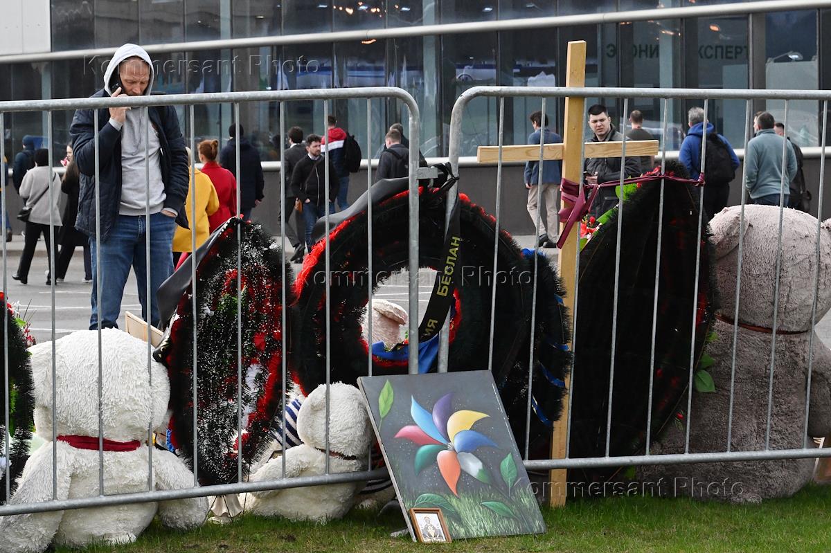 A spontaneous memorial near the building of the Crocus City Hall concert hall in memory of the victims of the terrorist attack on March 22, 2024.