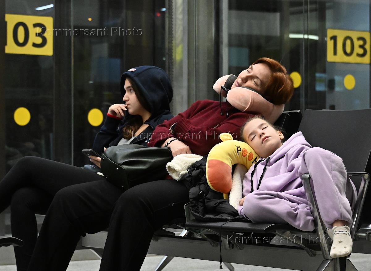 Международный аэропорт Сочи имени В.И.Севастьянова. Жанровая фотография. Пассажиры у зоны вылета.