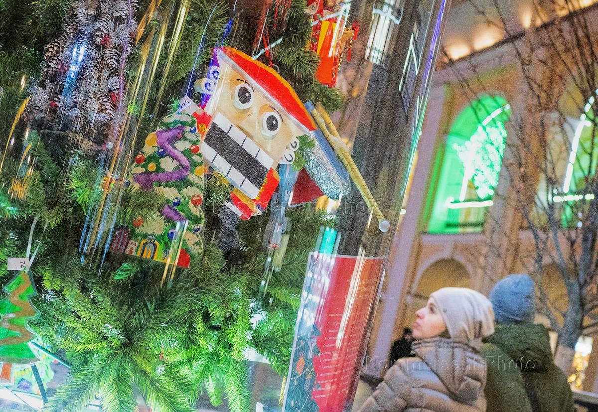 Жанровая фотография. Виды новогоднего города. Витрина с елочными игрушками в универмаге "Московский".