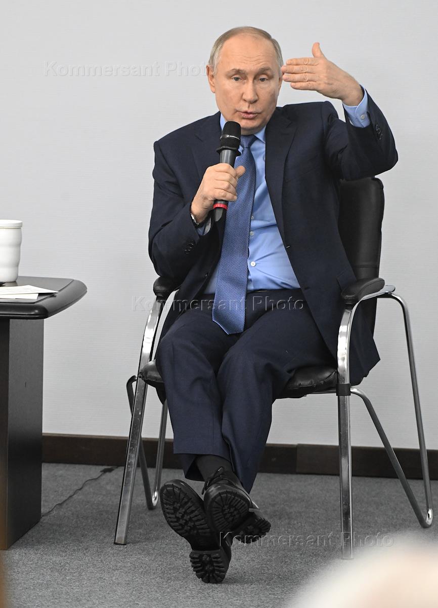 Рабочая поездка президента России Владимира Путина в Чукотский автономный округ. Президент России Владимир Путин перед началом встречи с местными жителями.